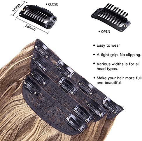 Chaque paquet contient 1 bande de 17,8 cm avec 4 clips, 1 bande de 15,2 cm avec 3 clips et 2 bandes de 12,7 cm avec 2 clips. Selon votre style, vous pouvez déterminer le nombre de pièces à utiliser. Les extensions mesurent 50,8 cm de long et pèsent 200g.