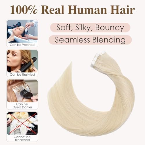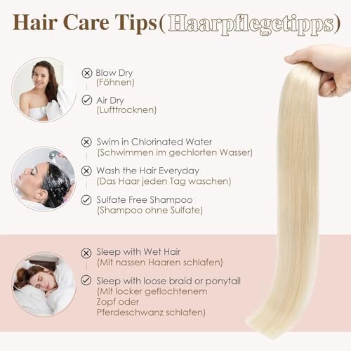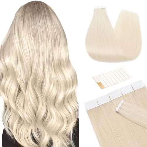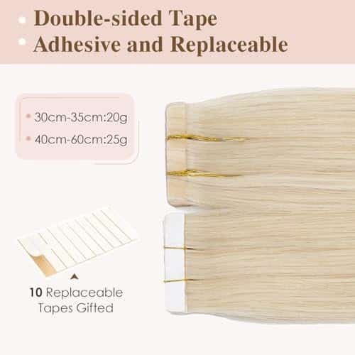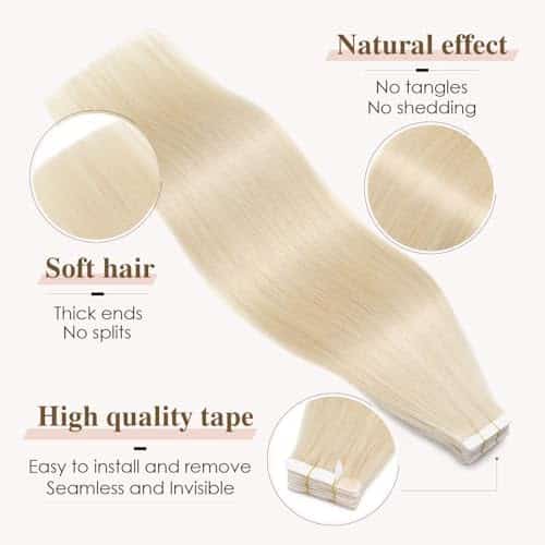 Cheveux naturels blonds « TESS Extensions adhésives Blond #60 – Cheveux Naturels 30cm – 20g – 10 pièces – Blond Blanc »