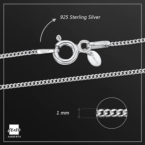 Collier Argent 925 Amberta®, Chaîne Maille Gourmette, Différentes Longueurs Disponibles
