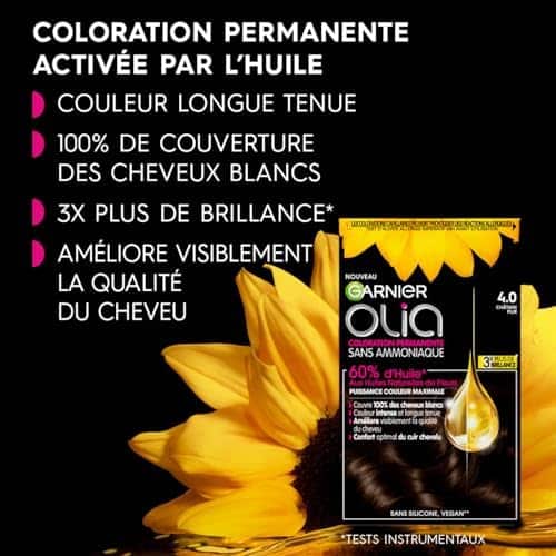 🌺 Explorez Olia de Garnier, la première coloration permanente sans ammoniaque, activée par l’huile pour une amélioration notable de la qualité du cheveu.