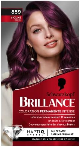Couleur de cheveux tendance 2024 « Coloration Permanente Violine Soie 859 – Brillance Eclat Diamant – Couvre 100% Cheveux Blancs – Avec Masque Soin – Schwarzkopf »