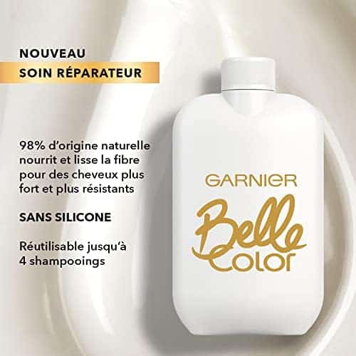 De par sa formule exclusive et brevetée, enrichie en huile de germe de blé et en actifs défensifs, Belle Color de Garnier prend soin de vos cheveux pendant le processus de coloration tout en veillant à respecter leurs nuances naturelles. Le soin, réutilisable, n’alourdit pas la fibre et unifie parfaitement les cheveux blancs : Il est donc bel et bien question d’un rendu naturel sans aucun risque d’effet casque.
