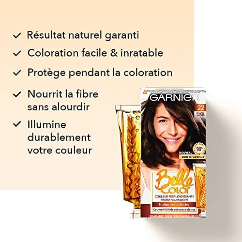 Couleur de cheveux tendance 2024 « Couleur Châtain Naturel 22 – Coloration Permanente Belle Color de Garnier »