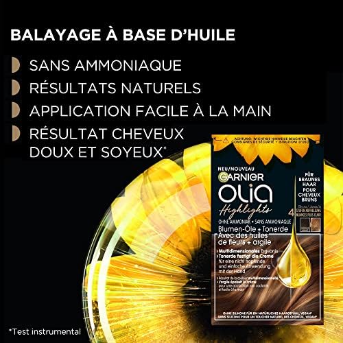 Couleur de cheveux tendance 2024 « Olia Balayage Éclaircissant Permanent de Garnier – Sans Amoniaque, Enrichi en Argile Pure »