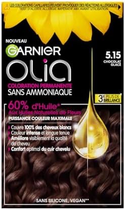 Couleur de cheveux tendance 2024 « Olia Garnier 5.15 – Coloration Chocolat Glacé Permanente Sans Ammoniaque à l’Huile Naturelle de Fleurs »