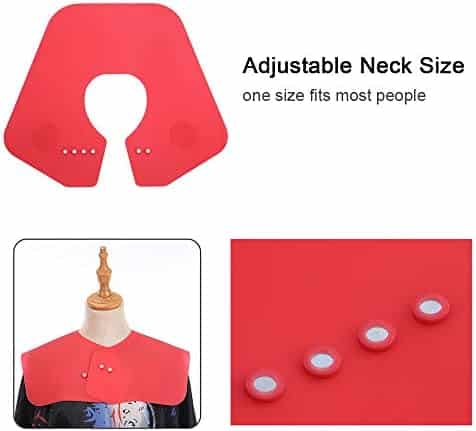 La Cape de coiffure est équipée d’une protection pour le cou innovément conçue pour la coupe des cheveux, pour préserver le col et les vêtements. Aimantée pour redimensionner et adapter à la majorité des femmes, jeunes adultes et enfants. Composée de silicone flexible, elle est aérée et agréable. Elle assure une protection efficace des robes et vêtements contre les produits chimiques, les cheveux et l’eau. Facile à nettoyer, résistante à l’eau et aux produits chimiques.
