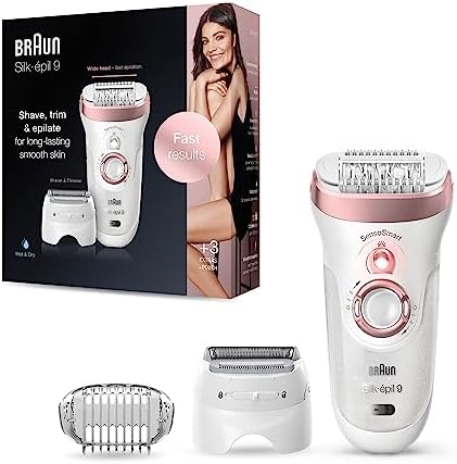 Epilateur Électrique Braun Silk-épil 9 Or Rose avec Technologie Micro-Grip & Accessoire Massage, Wet&Dry