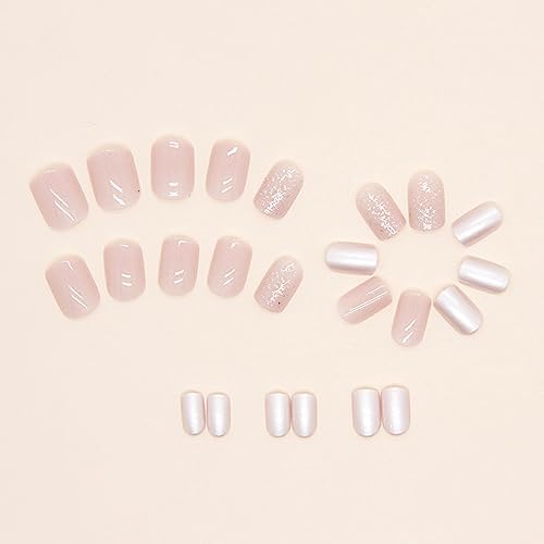 Ongle tendance 2024 « Faux Ongles Naturels Carrés & Courts en Acrylique – Kit de 24 Pièces avec Autocollants Adhésifs – Style Français Nude pour Femmes et Filles »