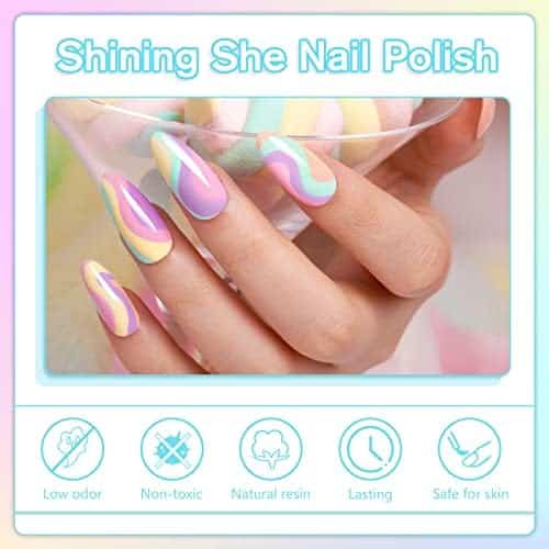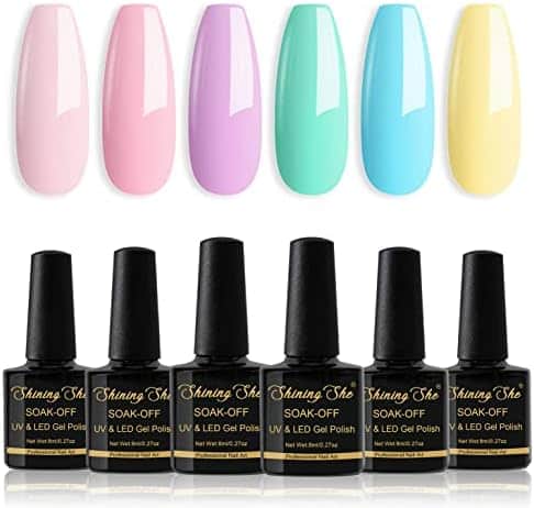 Ongles pastel « Vernis Semi-Permanent Shining She – Kit Manucure Pastel UV/LED 6 Couleurs Macaron, 8ml »