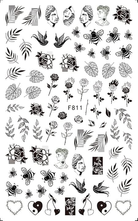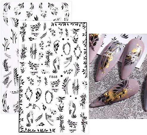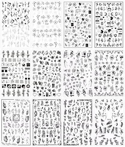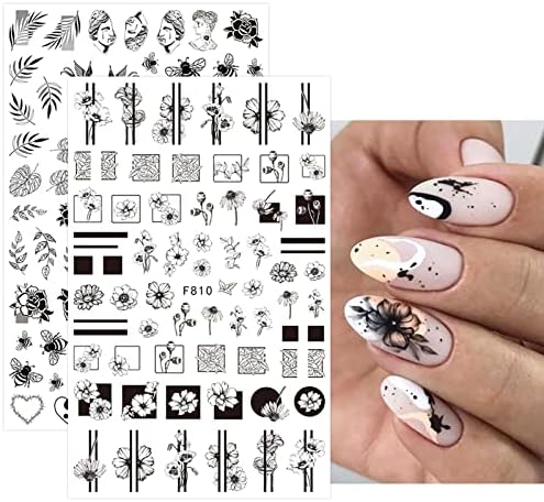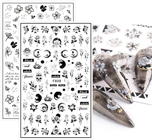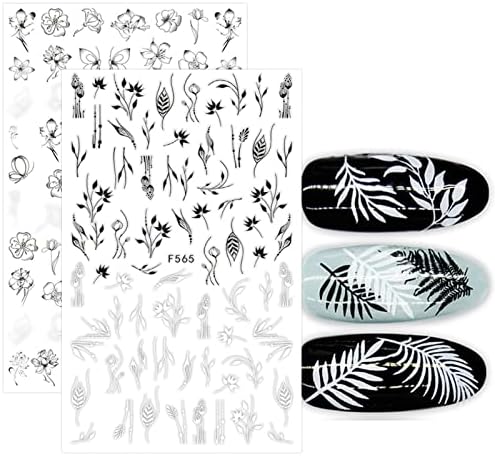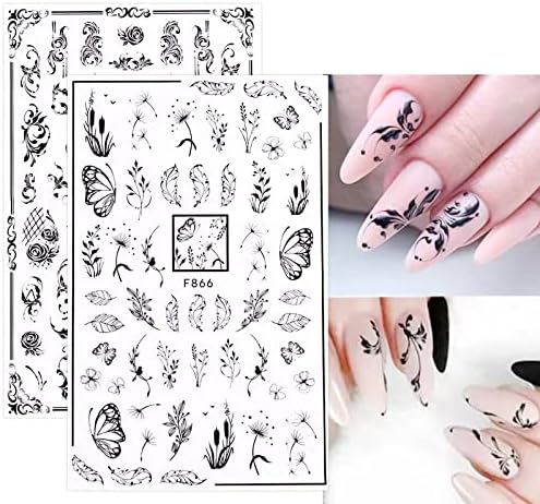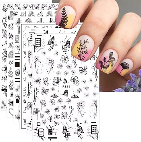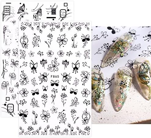 Ongles printemps 2020 « 12 Feuilles Autocollants d’Ongles Nail Art : Fleur Papillon Noir Blanc Printemps par JMEOWIO »