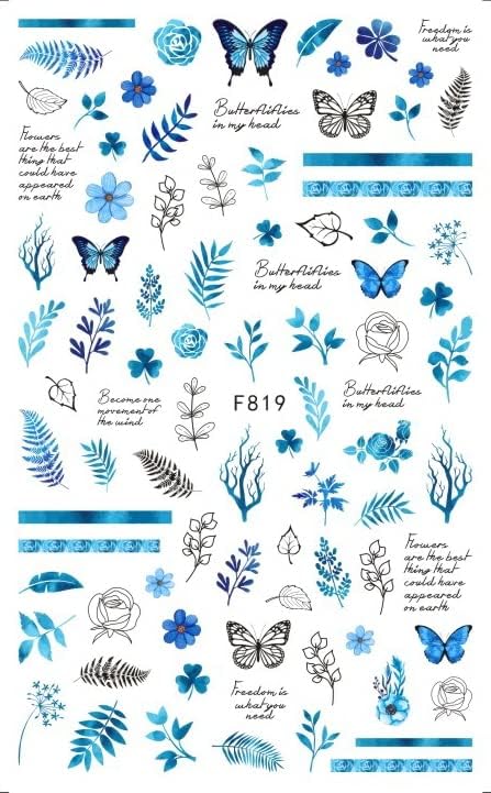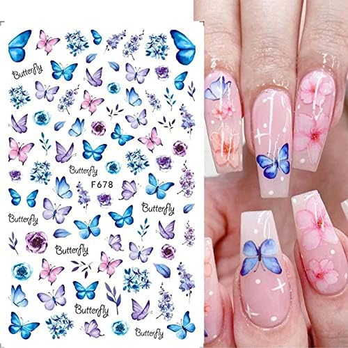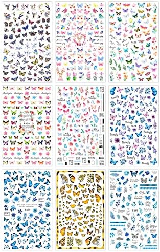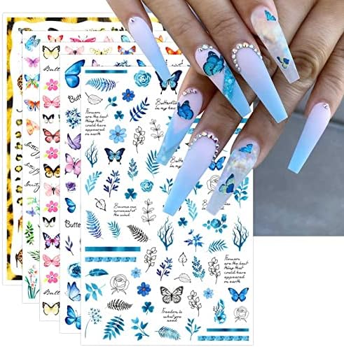 Ongles printemps 2020 « Autocollants Ongles Papillon Bleu JMEOWIO – Kit 9 Feuilles Nail Art Autoadhésif pour Manucure Printemps »