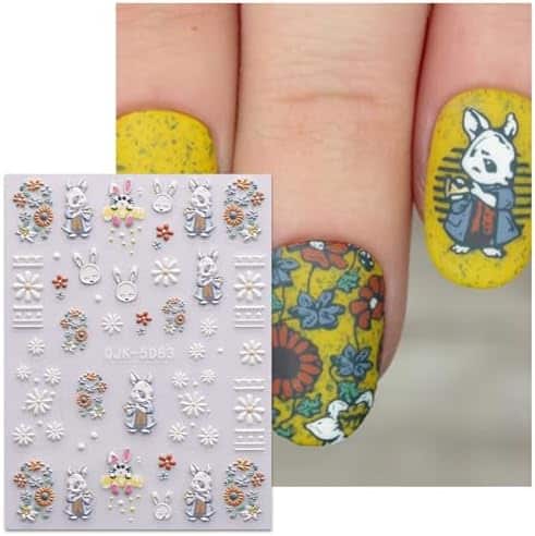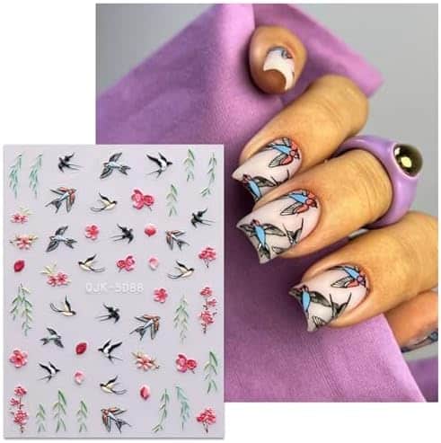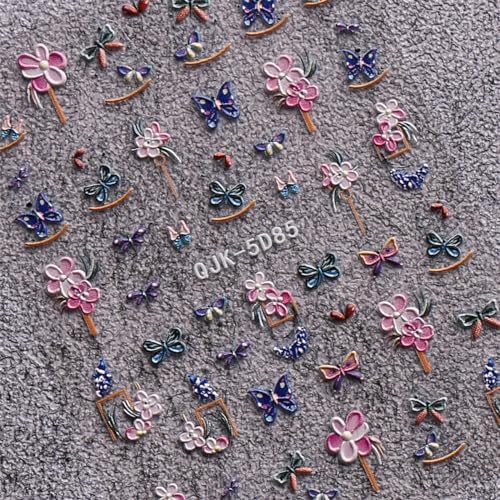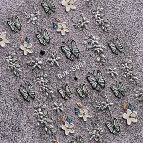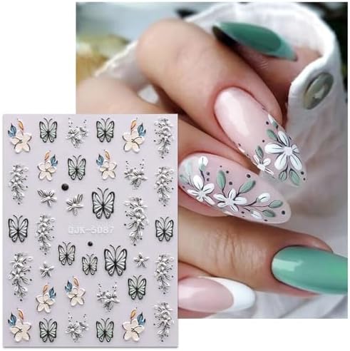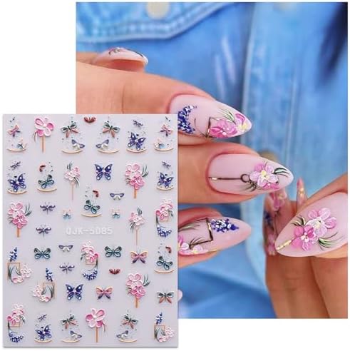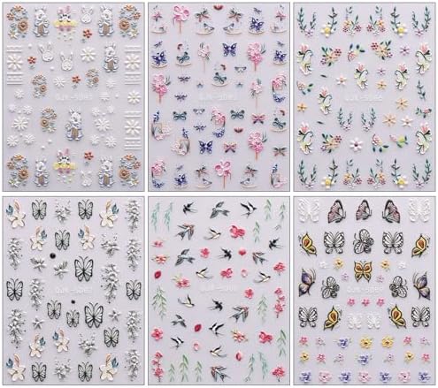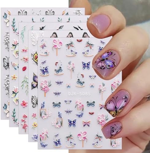 Ongles printemps 2020 « Stickers Ongles 5D JMEOWIO: Manucure Design avec Fleurs et Papillons 3D – 6 Feuilles Autoadhésives »
