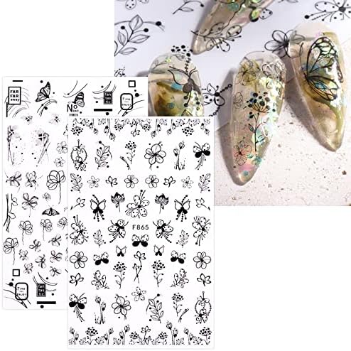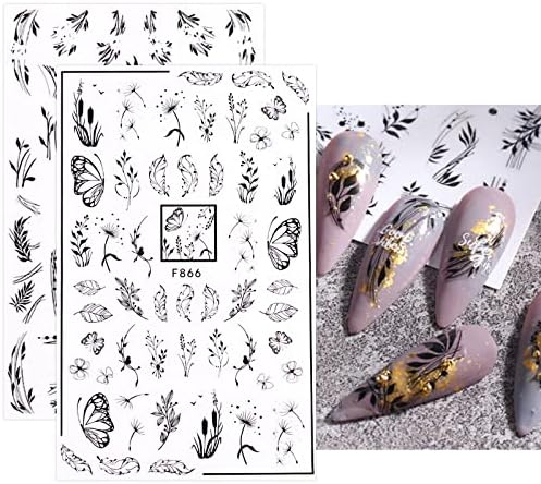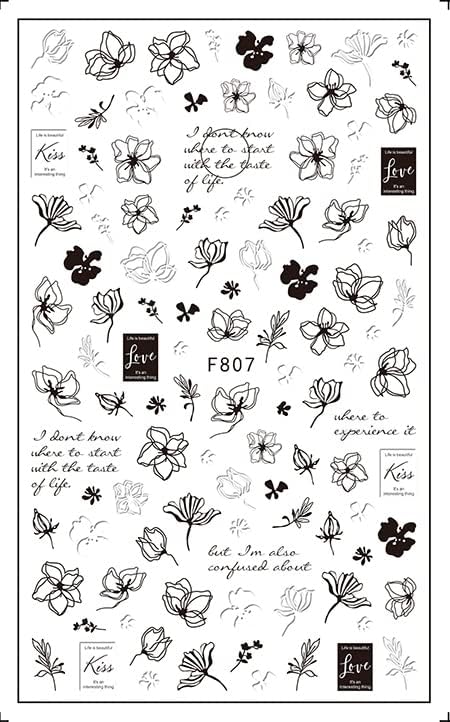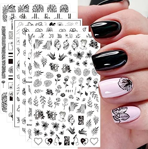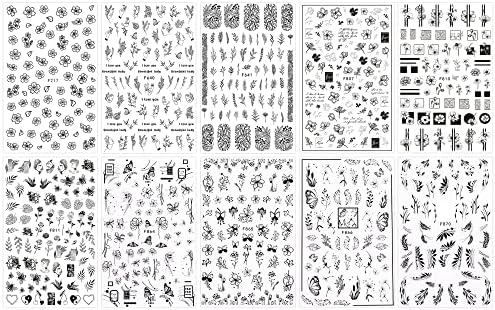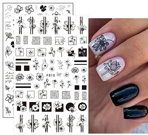 Ongles printemps 2024 « Autocollants Nail Art JMEOWIO : 10 Feuilles de Stickers Manucure Noir et Blanc à Motif Fleur de Printemps »