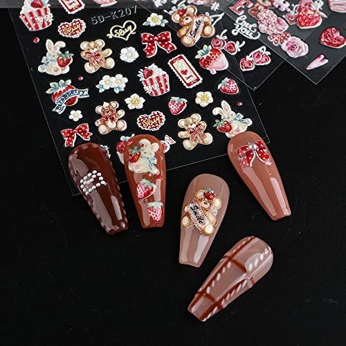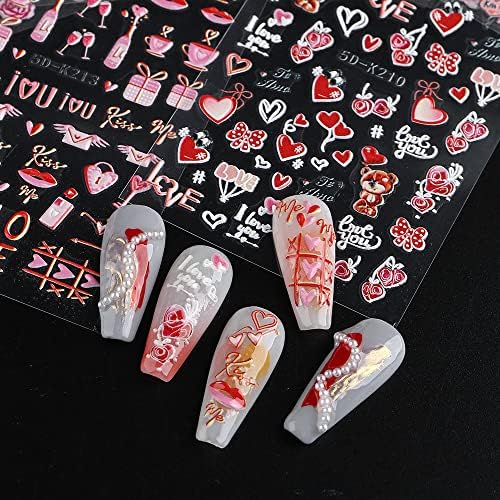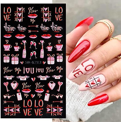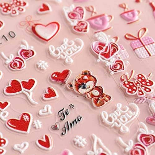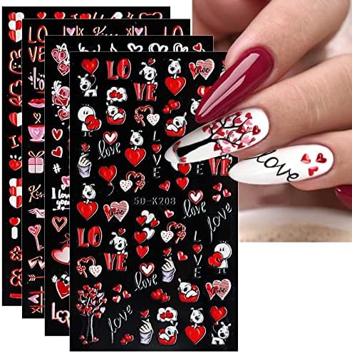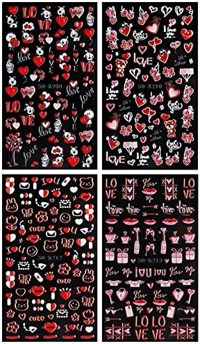 Ongles printemps 2024 « JMEOWIO Stickers 3D/5D pour Ongles – Design Cœur et Amour Saint Valentin – Manucure Attractive avec 4 Feuilles Autocollantes »