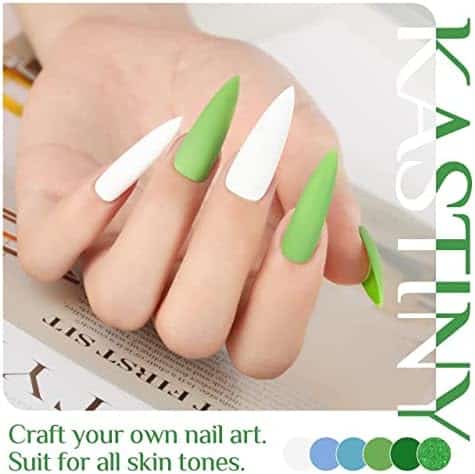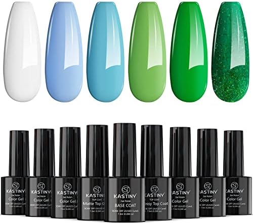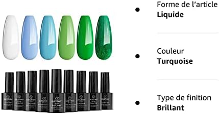 Ongles turquoise « Manucure DIY Kastiny: Kit Vernis Semi-Permanent 6 Couleurs, Base Coat Mat & Brillant pour UV LED, Turquoise, 7.5ml »
