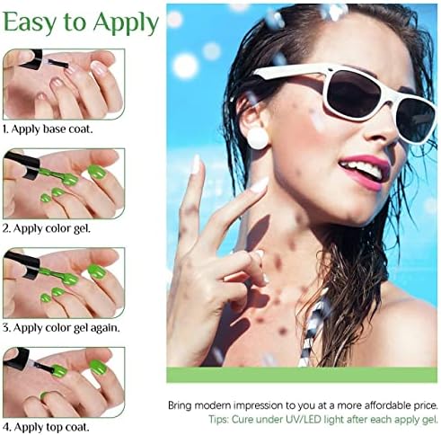 【Impression branchée】 : Notre gel s’applique comme un vernis traditionnel, offre la tenue d’un gel et se retire en quelques minutes seulement. Pour une finition effet miroir sublime. Nos 6 teintes sont des symboles de dynamisme et de passion. Chacune d’elles est choisie pour correspondre à la mode du moment. Les couleurs vert et blanc éclatant seront parfaites pour l’été et les périodes de vacances.