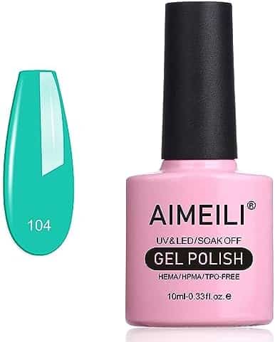 Ongles turquoise « Vernis à Ongles Vert Turquoise AIMEILI – Gel Semi-Permanent UV LED, Off Soak, 10ml »
