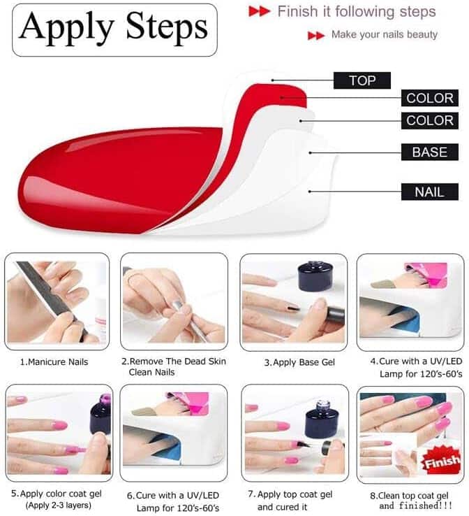 ⏱️ Préparation rapide! Nettoyez simplement vos ongles et appliquez une couche de base, suivi de 2 à 3 fines couches de couleur UV/LED, et terminez avec une finition Top Coat 💫
