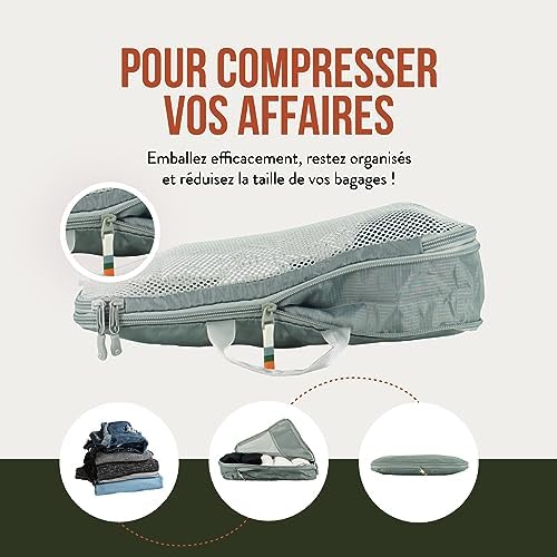 Ces cubes offrent une fonction de compression incroyable vous permettant d’optimiser au maximum l’espace de vos bagages. Vous pouvez ainsi emballer vos affaires de façon plus organisée et compacte, réduisant l’encombrement.