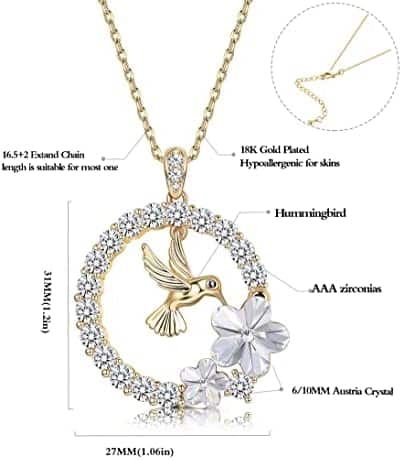 Pendentif Colibri Plaqué Or & Cristal – Colliers Femme, Bijoux Cadeau