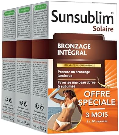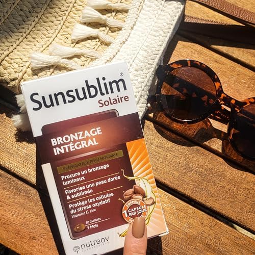 Photo bronzage « Sunsublim Bronzage Intégral NUTREOV – Boostez votre bronzage avec notre Complément Alimentaire Naturel – 30 Capsules Made in France »