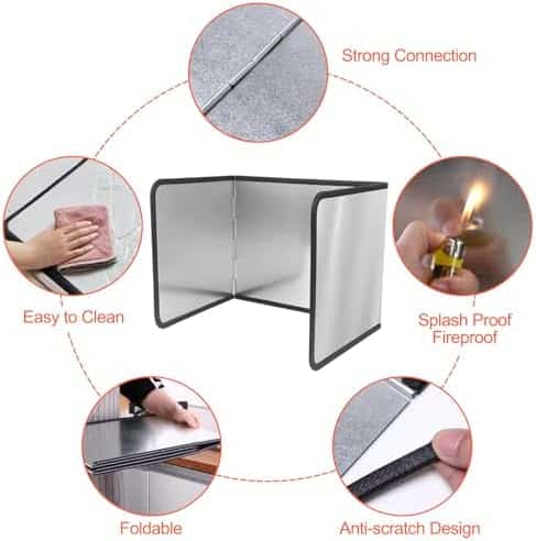 Polyvalente, cette plaque anti-projections pliable ne se limite pas à vous assister lors de vos sessions de cuisson. Elle fonctionne également comme une planche à découper pour les légumes et un écran de protection pendant la vaisselle pour éviter les éclaboussures d’eau sur le comptoir adjacent. Tout simplement, un excellent complément pour votre cuisine!
