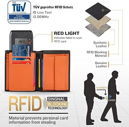 En plus d’avoir un design classique et une division intelligente pour un maximum d’espace de stockage, ce portefeuille pour homme intègre une fonction de protection RFID avancée. Cette technologie RFID (identification par radiofréquence) protège vos cartes de crédit et vos licences contre le vol. Elle bloque les signaux RFID de 13,56 MHz ou plus et empêche les analyses non autorisées de vos cartes à puce et de crédit/débit. Ainsi, vos informations personnelles sont en sécurité. Par ailleurs, ce portefeuille est idéal pour les voyages d’affaires, les sorties, les voyages ou les vacances grâce à ses multiples compartiments et sa résistance.