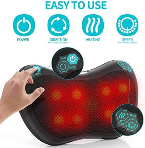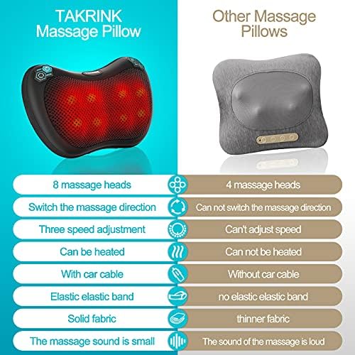 Relaxation optimale: TAKRINK Coussin masseur Shiatsu chauffant avec 8 nœuds – Idéal pour Dos, Cou, Pieds, Cervical.