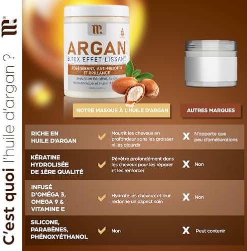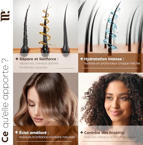 – 🥑 Formule riche en kératine et huile d’Argan pour nourrir, protéger et régénérer en profondeur vos cheveux.