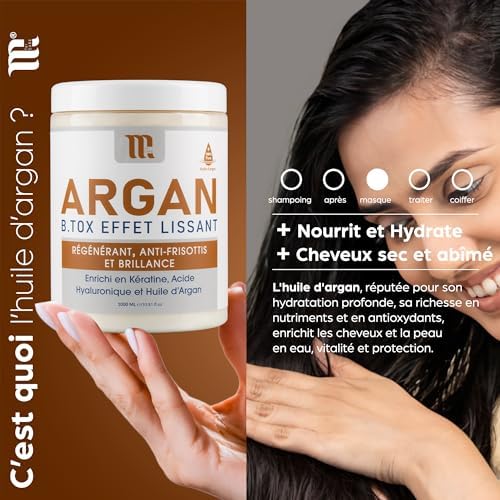 Les passionnés de kératine et d’huile d’argan vont adorer notre Botox capillaire ! Ce produit agit comme un véritable héros pour vos cheveux en leur apportant force, protection et lissage. Riche en huile d’argan, il nourrit et revitalise en profondeur le cheveu, faisant de votre crinière le centre d’attention.