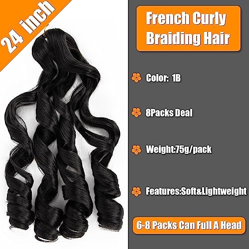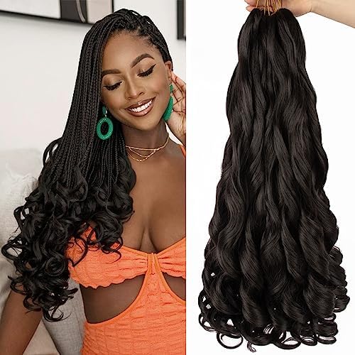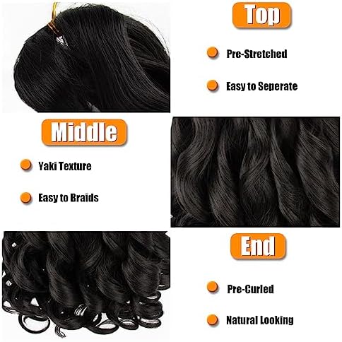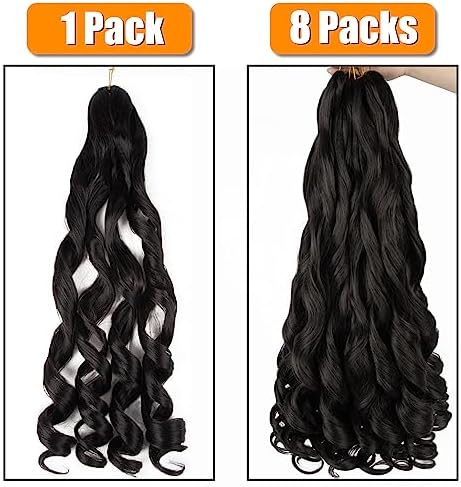 Summer hairstyles Extensions Crochet Noires: Baguette de France à Frisettes 18 Pouces, Cheveux Pré-étirés et Ondulés pour Tresses – Pack de 8