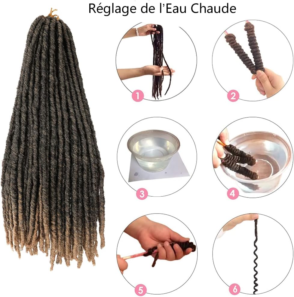 Les images affichées ci-dessus vous donnent un aperçu des différentes nuances de nos locs, leur aspect et leur texture. Légères et non enchevêtrées, elles sont fabriquées à partir de fibre Kanekalon de haute qualité, garantissant une texture lisse et soyeuse. La flexibilité de nos locs vous permet de créer différents styles de coiffure pour répondre à vos envies. Un autre avantage est qu’elles sont sans odeur et esthétiquement agréables. Chaque extension de cheveux est prévue pour être crochetée, pour un style de dreadlocks compact et élégant.