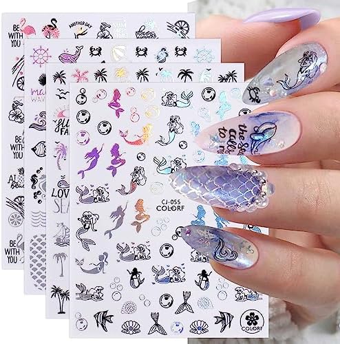 Summer nails « 9 Feuilles Stickers d’Ongles Requin JMEOWIO – Nail Art Tropical pour Été et Plage »