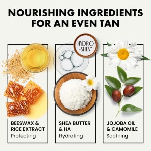 Les lotions autobronzantes génériques laissent souvent la peau inégale. Notre complexe NO-STREAK, comprenant de l’huile de jojoba, du karité et de la cire d’abeille, offre une glisse idéale pour une couverture homogène. Ces ingrédients revitalisent la peau terne et renforcent sa barrière, aidant à prévenir la perte d’hydratation et à créer une LUMIÈRE SAINE ET SANS DÉFAUT.