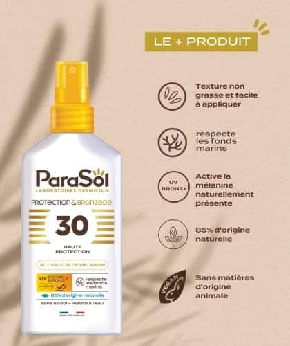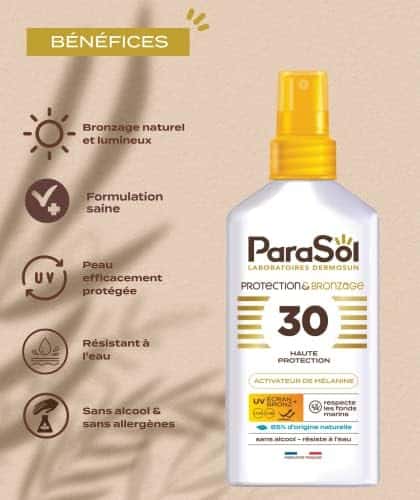 Trace de bronzage « Spray Bronzant 30 FPS Activateur de Mélanine: Protection ParaSol & Bronzage Intense »
