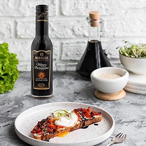 🍽️ Éveillez vos papilles avec le Velours de Vinaigre Balsamique de Modène Maille : une explosion de saveurs dans un condiment au goût exquis.